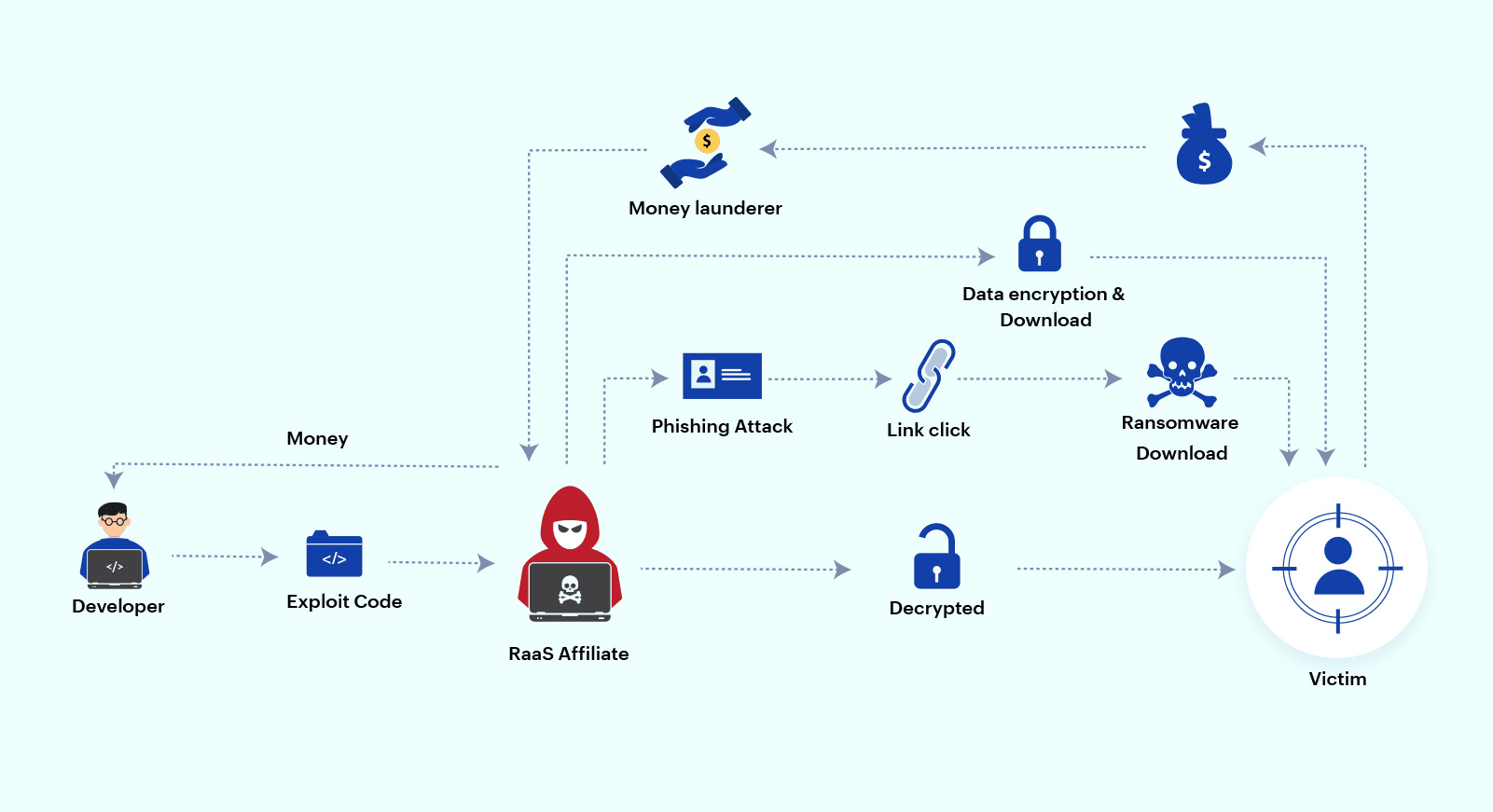 Ransomware-as-a-Service (RaaS) bekerja dengan prinsip yang mirip Software-as-a-Service (SaaS). Bedanya, jika SaaS menyediakan software legal, RaaS justru menyediakan ransomware sebagai layanan.