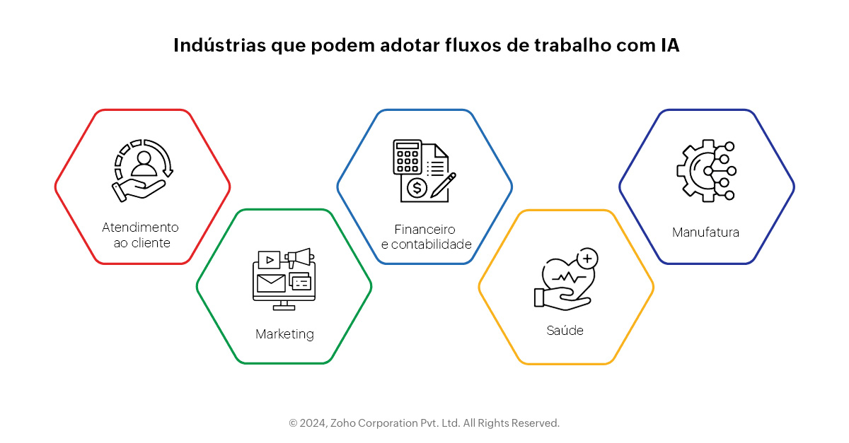 Os fluxos de trabalho de IA podem ser aplicados em diversos setores e funções. Aqui estão alguns exemplos reais: